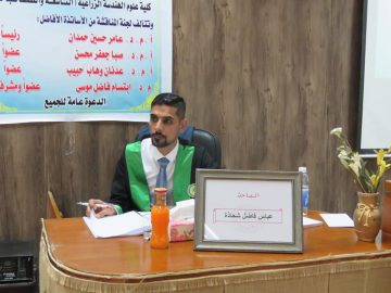 شهدت كلية علوم الهندسة الزراعية جامعة بغداد مناقشة رسالة الماجستير الموسومة(دور الإستغلال الزراعي في تقييم الأراضي المختلفة الأستعمالات لبعض أراضي الترب الصحراوية في محافظة كربلاء)، للطالبة أمنه علي سبع من قسم مكافحة التصحر .