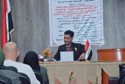 مشاركة تدريسي من علوم الهندسة الزراعية عضواً في لجنة مناقشة خارجية