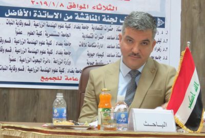 مشاركة تدريسي من علوم الهندسة الزراعية عضواً في لجنة مناقشة خارجية