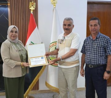عميد كلية علوم الهندسة الزراعية تتسلم درع الإبداعCoagri06/10/2025تسلمت الاستاذ الدكتورة أميرة محمد صالح عميد كلية علوم الهندسة الزراعية جامعة بغداد درع الابداع الارشادي وشهادة تقديرية من الدكتور ... المزيد