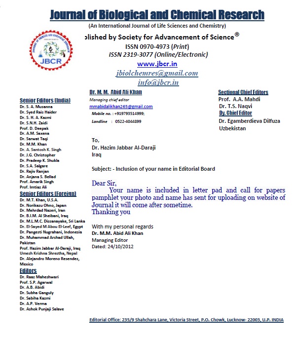 حصل الأستاذ الدكتور حازم جبار الدراجي على عضوية هيئة تحرير مجلات علمية عالمية أخرى وهي كما يلي:
