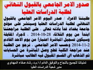 اعلان الى الطلبة المقبولين الجدد في كلية الزراعة