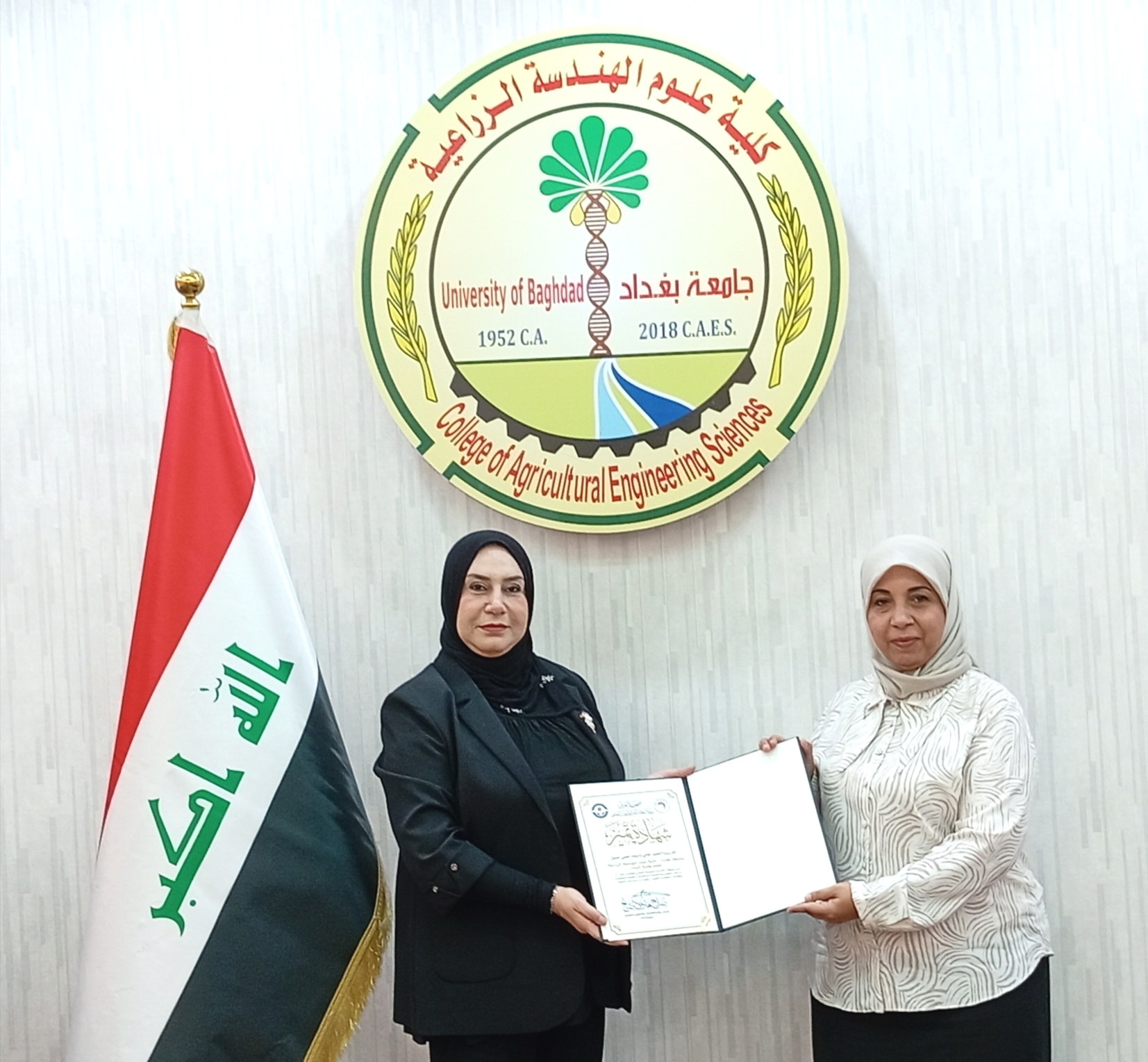 كرمت الاستاذ الدكتورة اميرة محمد صالح عميد كلية علوم الهندسة الزراعية جامعة بغداد الاقسام العلمية في الكلية والتي حصدت المراكز الاولى في التصنيف العراقي للجامعات لعام ٢٠٢٤ وهي كل من