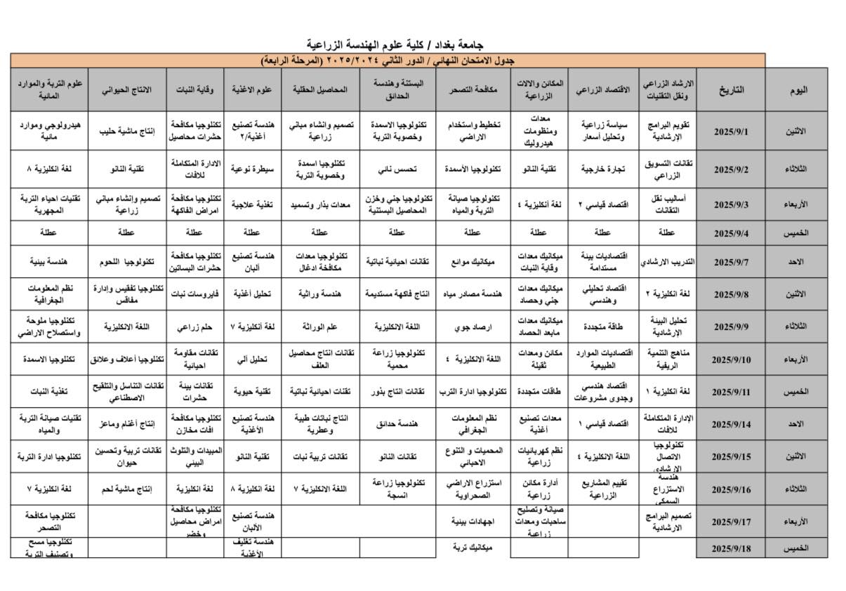 صدور جدول الامتحانات النهائية – الدور الثاني للعام الدراسي 2024 – 2025.
