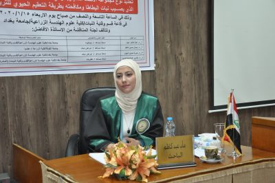 تدريسية من علوم الهندسة الزراعية مشرف ثاني في رسالة ماجستير بالجامعة المستنصرية