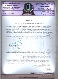 الامر الجامعي لنتائج القبول في الدراسات العليا 2016-2017 كلية الزراعة / جامعة بغداد