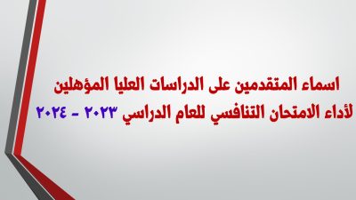 اسماء المتقدمين على الدراسات العليا المؤهلين لاداء الامتحان التنافسي للعام الدراسي 2024/2023