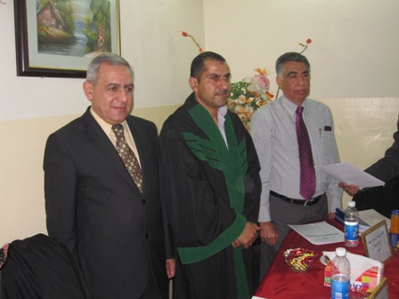 بناءً على توصية قسم الثروة الحيوانية واستناداًالى موافقة مجلس الكلية بجلسته الثالثة عشر في 19 / 2 / 2013 تمت مناقشة طالب الماجستير ” انس اسماعيل خليل” لرسالته الموسومة ” تقديرالكفاءة التناسلية بطريقتي Wilcox وTomar في ابقارالحليب لأغراض الانتخاب” بأشراف الاستاذ الدكتورة نصر نوري الانباري وذلك فييوم الاثنين المصادف 1 / 4 / 2013 على قاعة حمورابي في قسم علوم الاغذية وقدتألفت لجنة المناقشة من السادة المدرجة اسماؤهم ادناه: