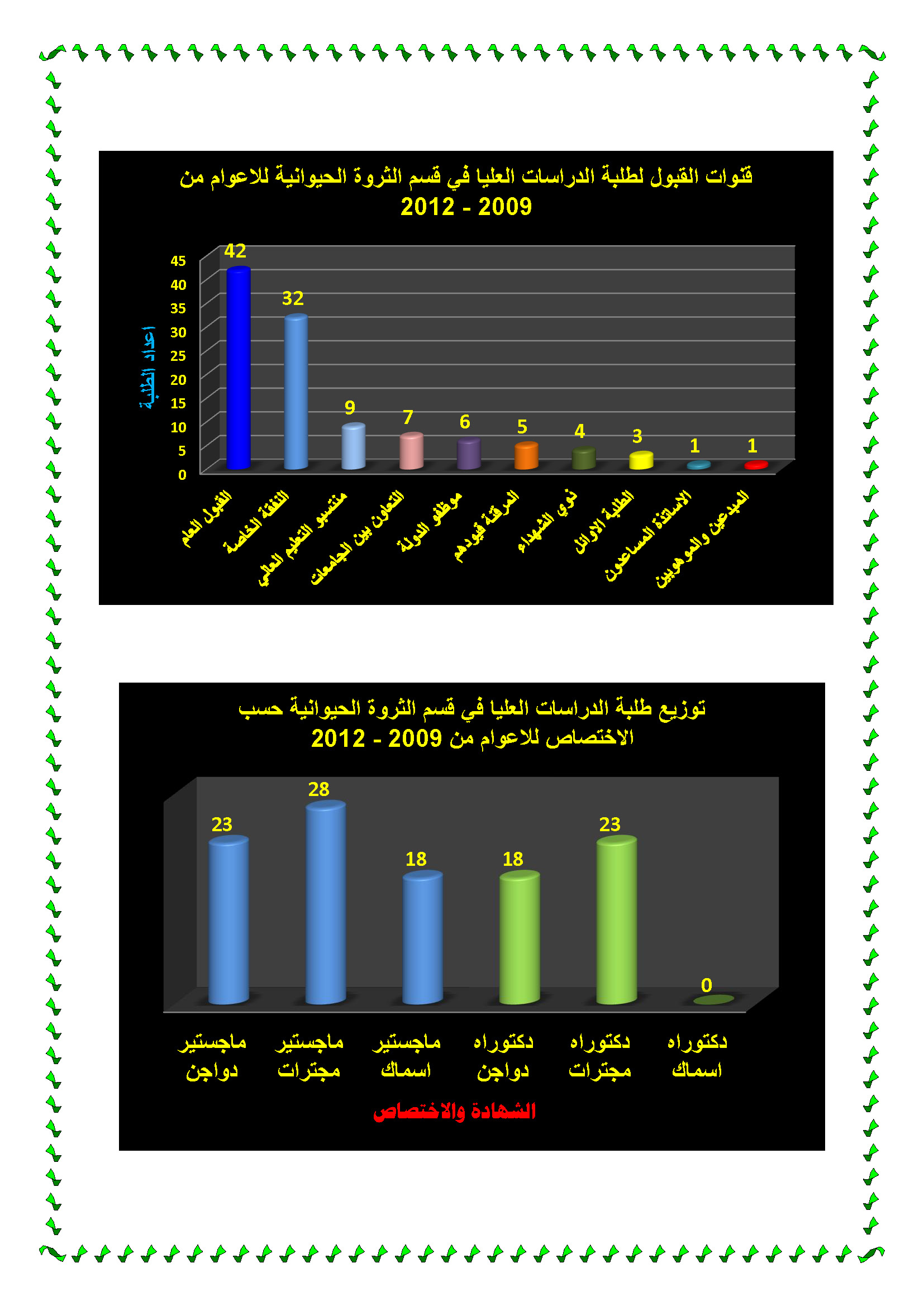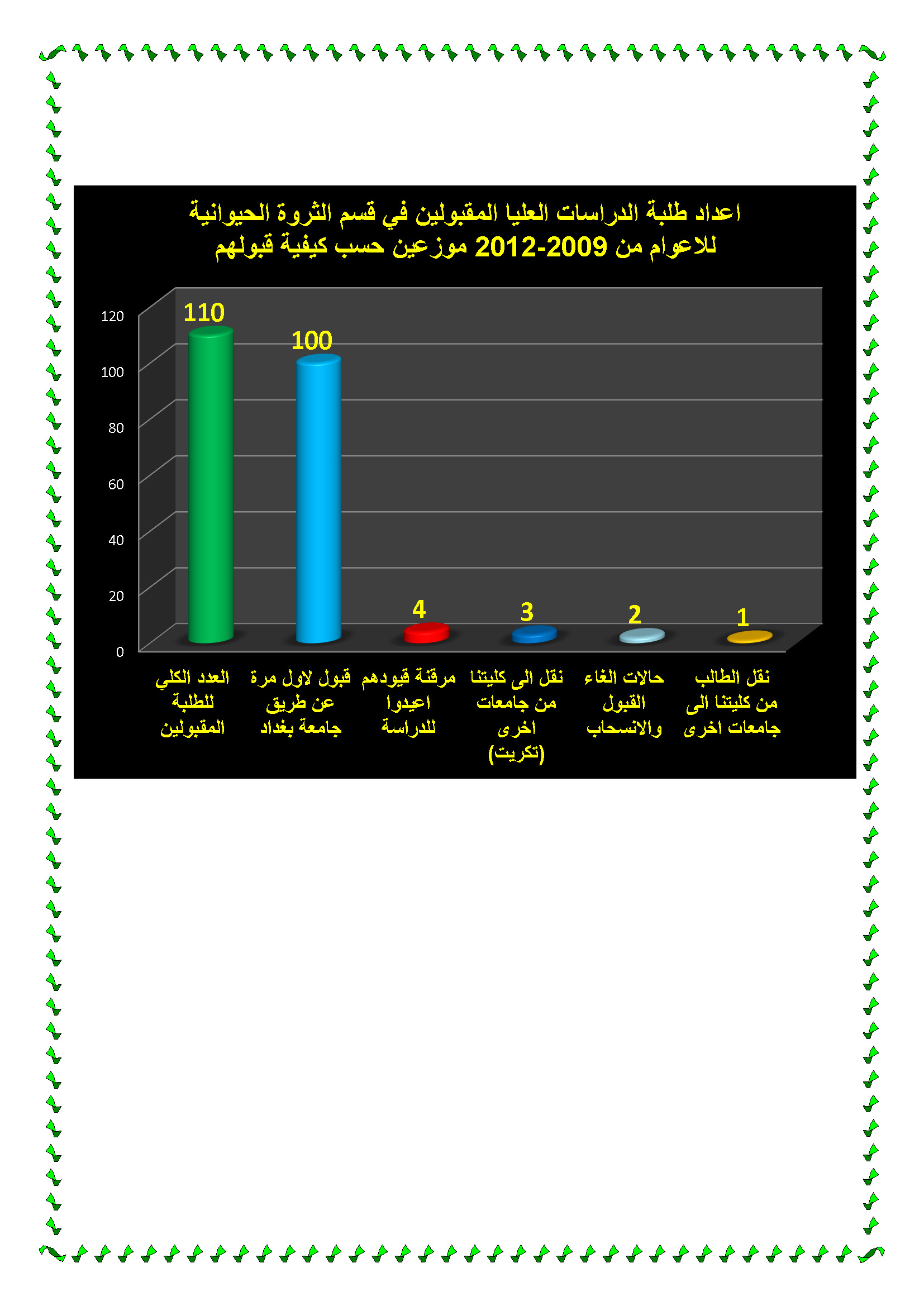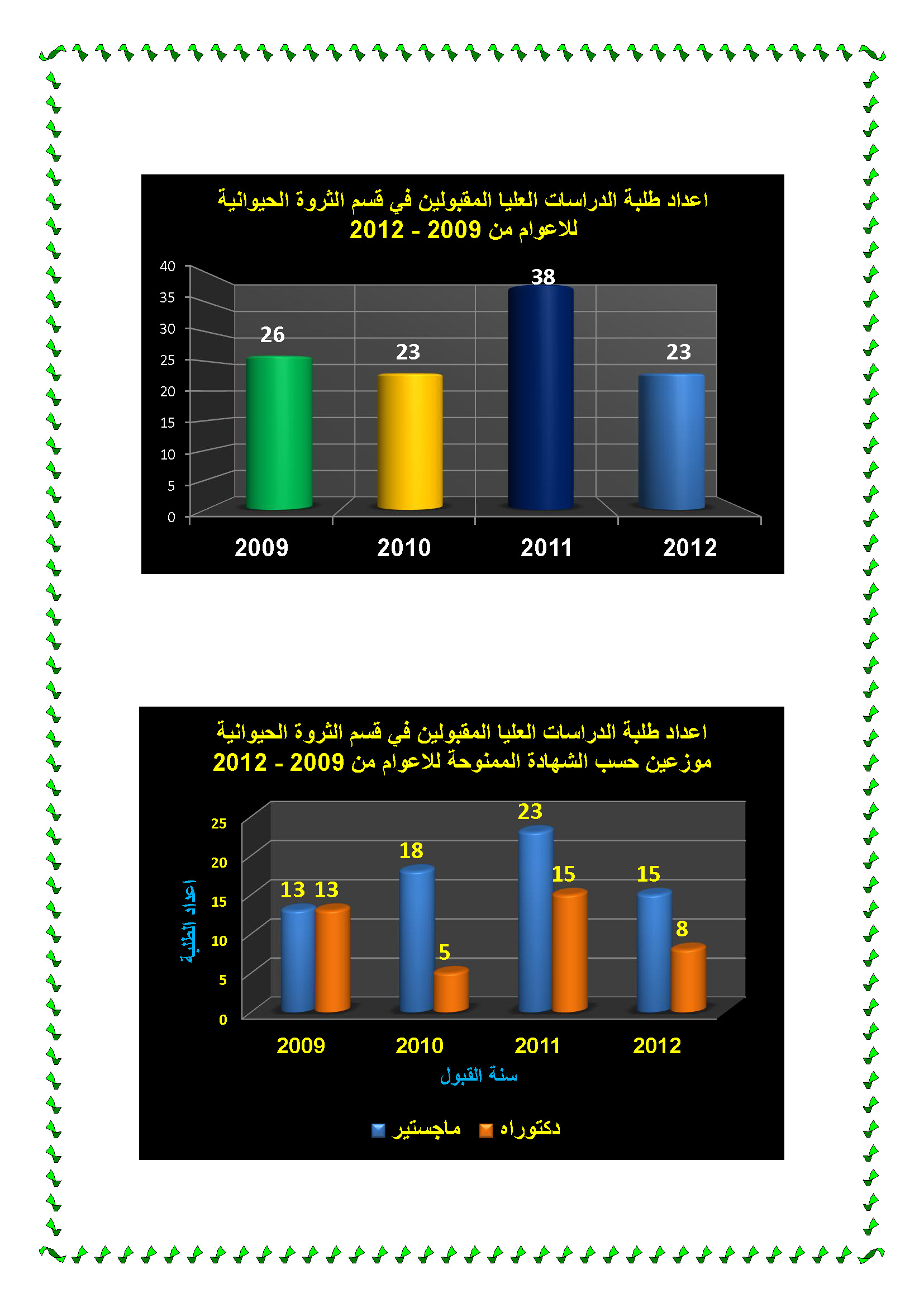 احصائيات طلبة الدراسات العليا في قسم الثروة الحيوانية للأعوام من 2009 – 2012