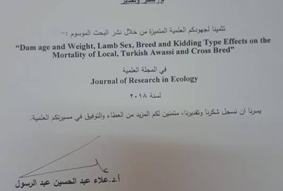 شكر وتقدير من رئيس الجامعة لتدريسية من علوم الهندسة الزراعية