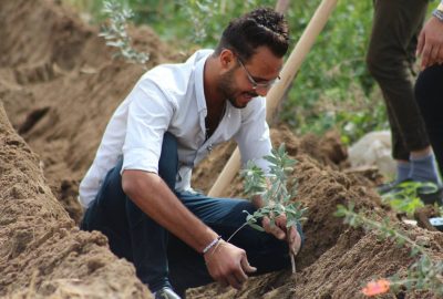 زراعة شتلات الزيتون في محطة ابحاث C ضمن أروقة الكلية و الجامعة ضمن مشروع زراعة مليون شجرة